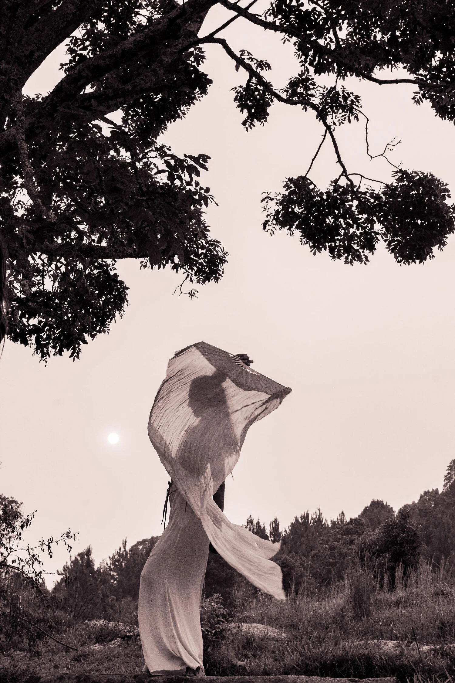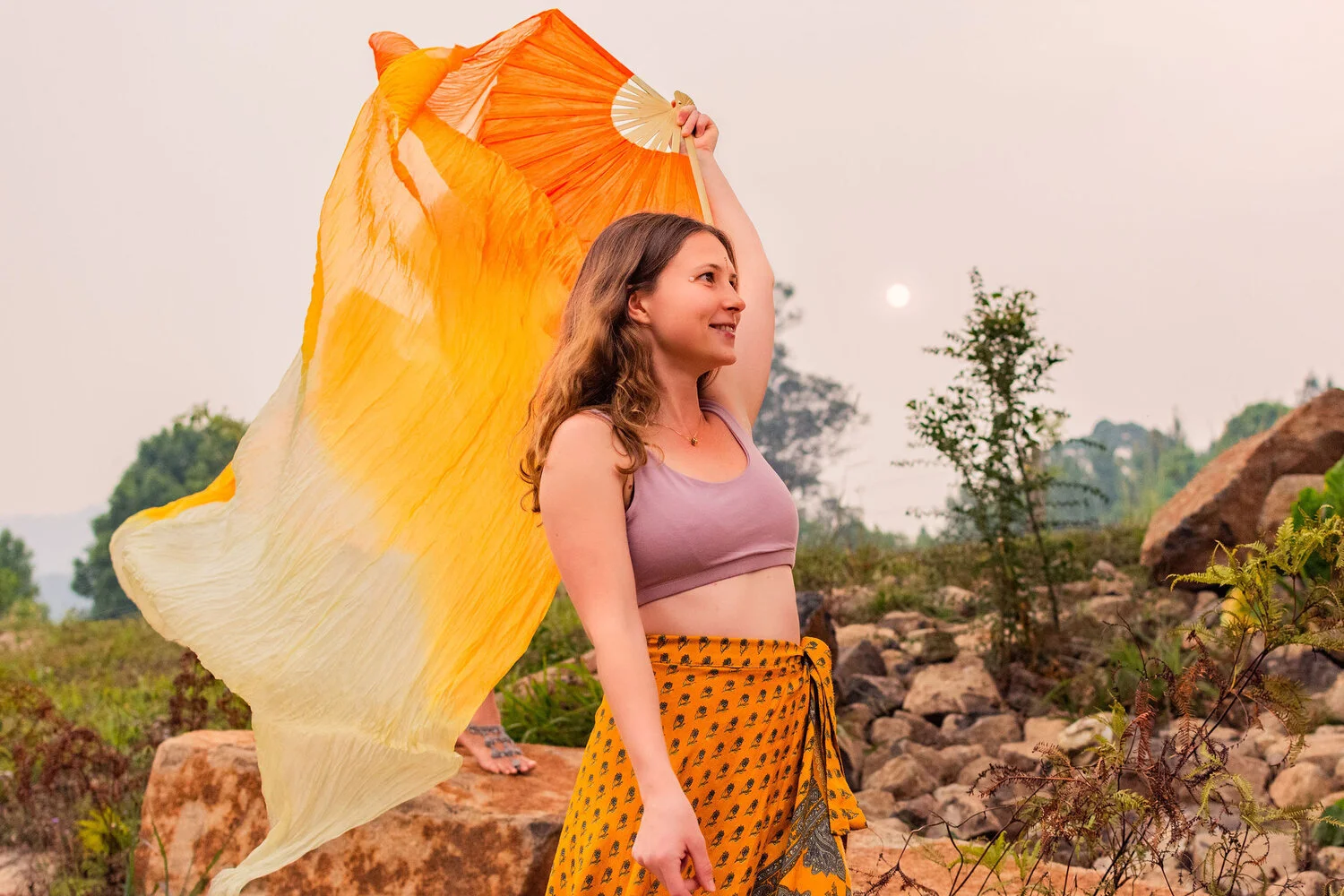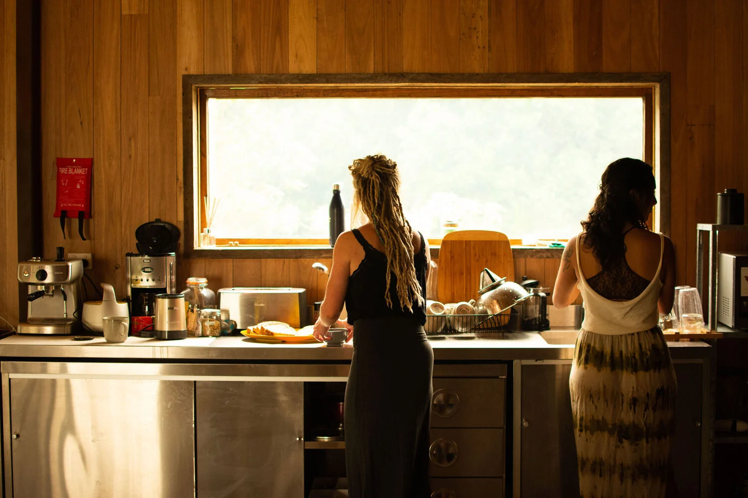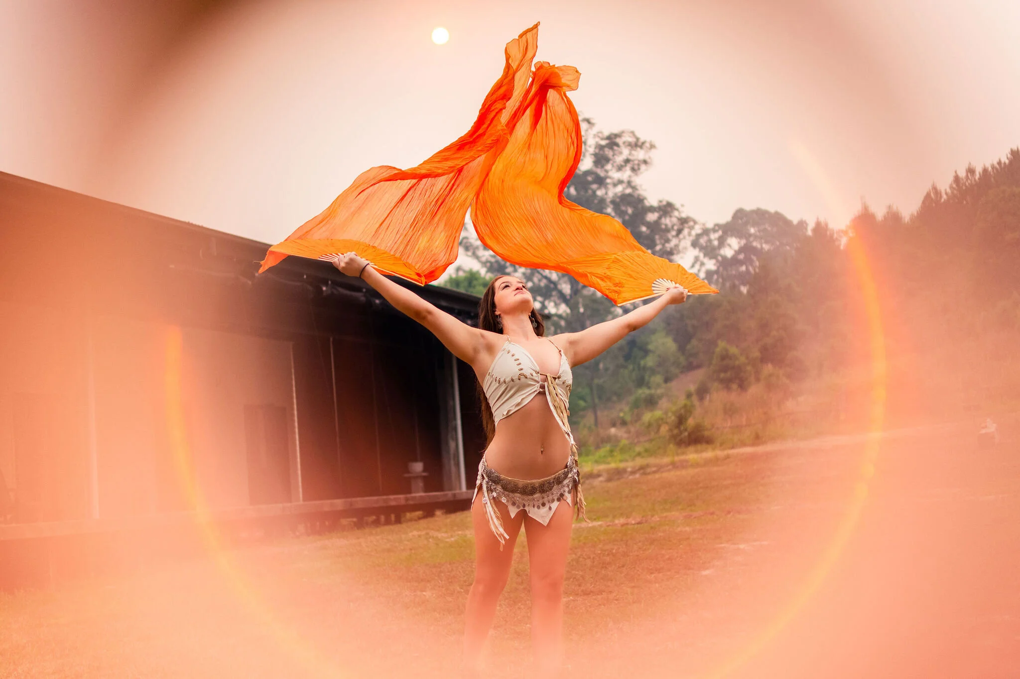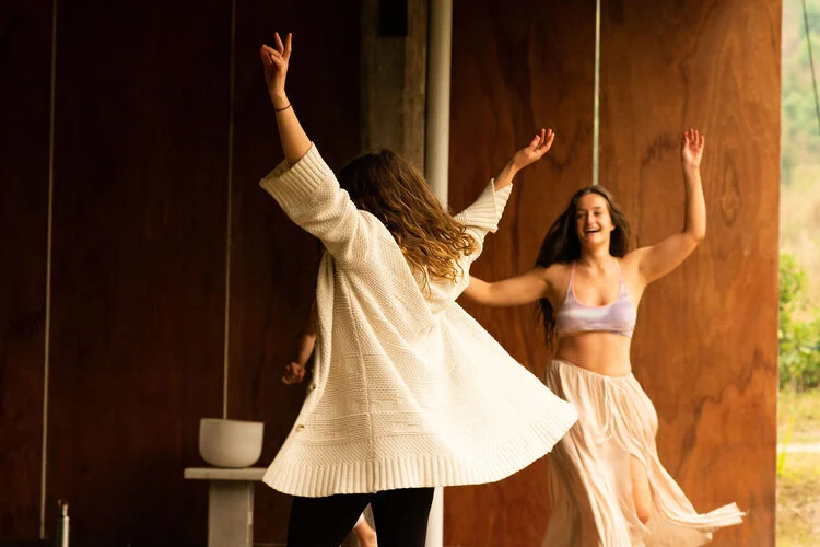 Originally planned as a fire dancing retreat the organisers Hailey and Bella, made the decision not to light up in honour and respect of what the surrounding land was experiencing. Instead they danced with the wind blowing through orange silk fans, called in the element of water and prayed for rain. During the retreat, the women learned about herbal remedies, bathed in crystal bowl sound healing, nourished themselves with plant based feasts, did yoga, feminine movement sessions, infrared saunas and swam under the red moonlight in a glistening lake.